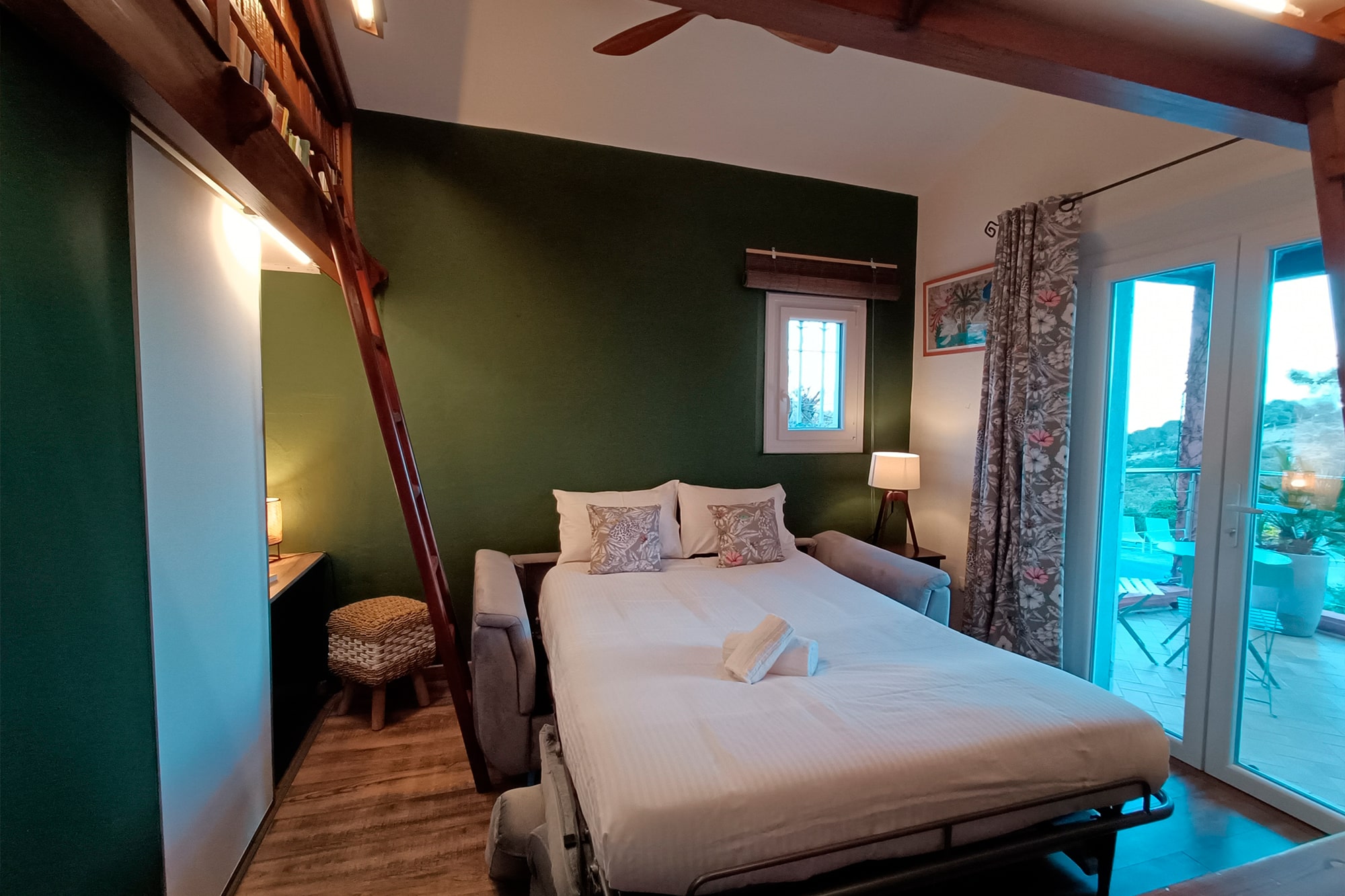 La chambre Daintree est sans doute la plus singulière de la Villa. Cette bibliothèque originale vous plongera dans une ambiance tirée d’un véritable roman d’Agatha Christie.